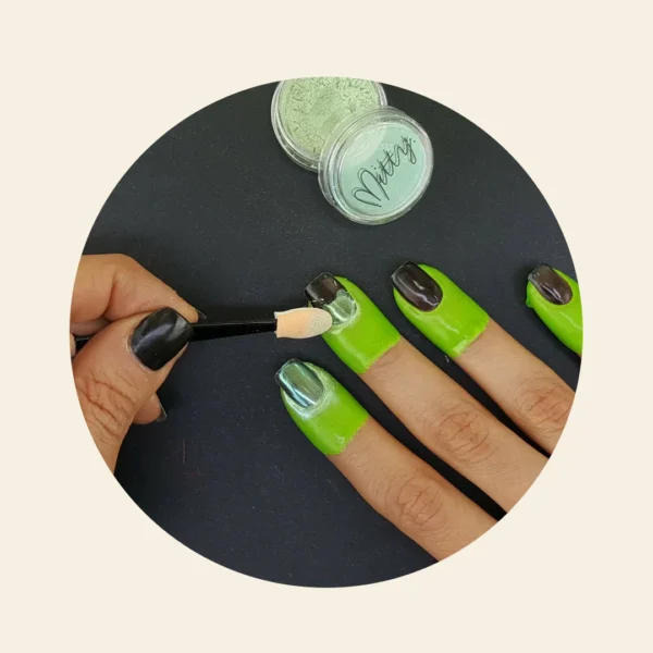 There are different type of powders like chrome powders, shimmer powders, and holographic powder. The difference in these are the pigment used which in return give you the different look.