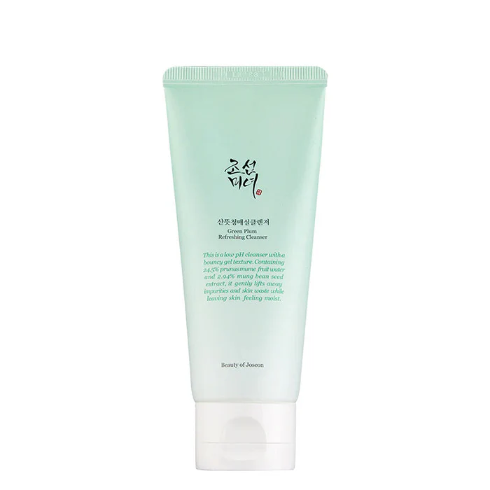 BEAUTY OF JOSEON Green Plum Refreshing Cleanser is a low pH gel-cleanser with a slightly acidic formula to help those with sensitive skin maintain the most optimal oil and water balance. The hydrating gel-textured cleanser is made with calming ingredients of Green Plum water and Mung Bean extract to gently, yet deeply, exfoliate away dead skin cells and other impurities while moisturizing the skin. The lightweight, hypoallergenic cleanser helps maintain a healthy skin barrier, making it ideal for those with sensitive skin or those whose face dries up quickly after cleansing.