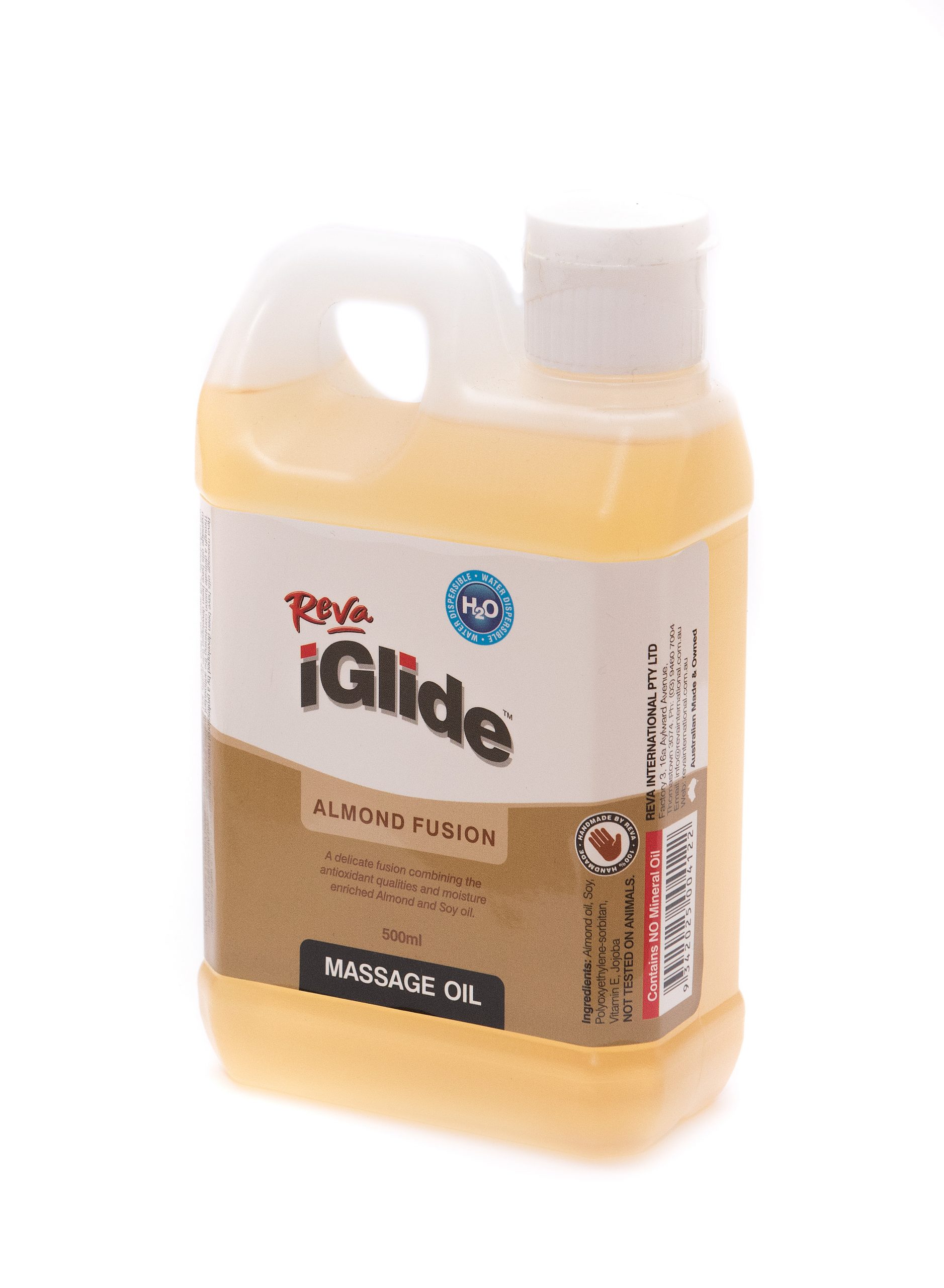 Reva massage oils have been developed by a professional massage therapist and are 100% water dispersible. Through a delicate fusion combining the antioxidant qualities and moisture enriched Almond and soy oil , our massage oils have been developed with quality and affordability in mind. With added Vitamin E and Jojoba, you will undoubtedly “drift away” with Reva.
