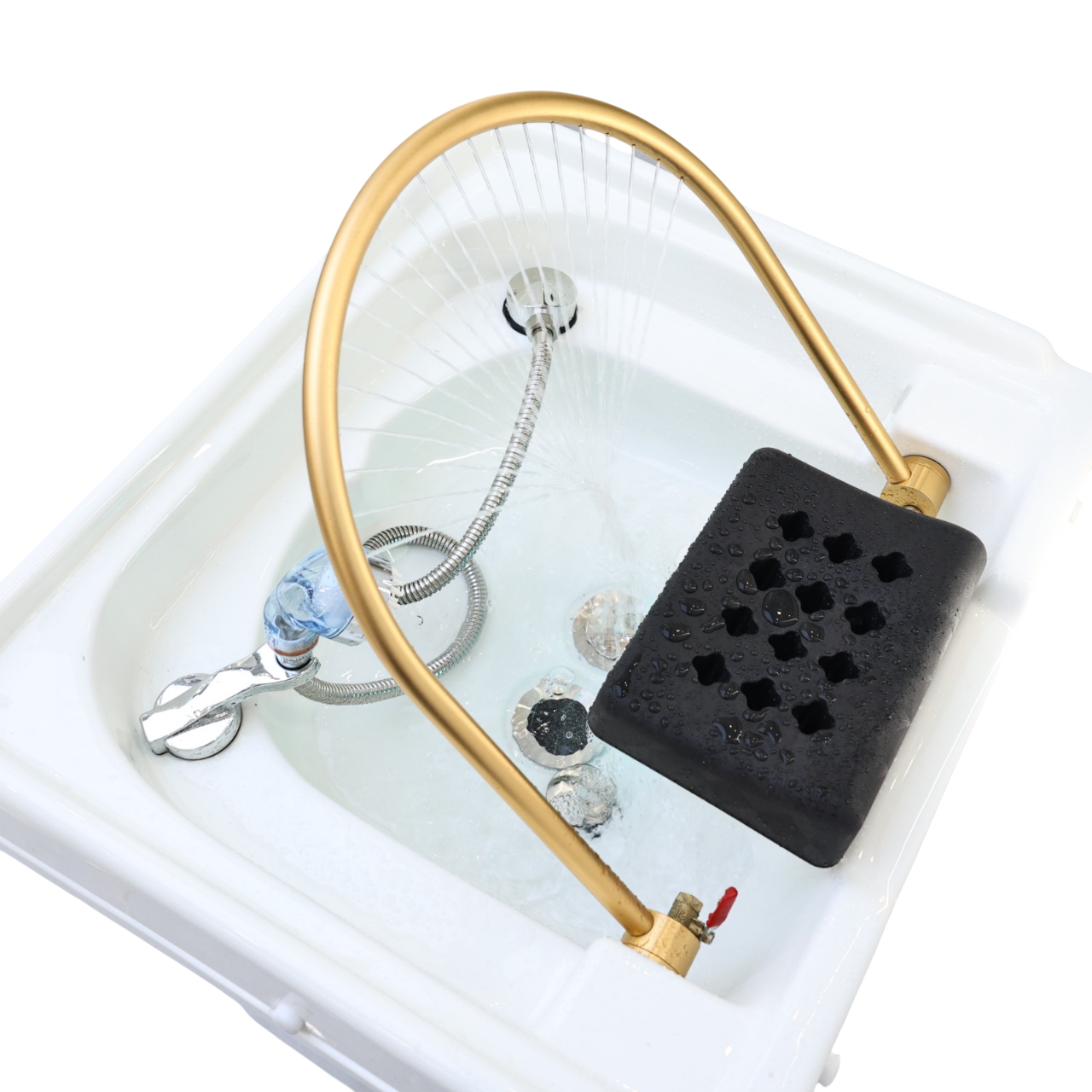 The adjustable shower head provides targeted water flow for controlled rinsing and therapeutic scalp cleansing. Ideal for head spa rituals, hair detox treatments, and relaxing wash sessions.