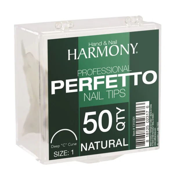 The Harmony Perfetto Nail Tips Natural 50ct – Size 7 are expertly designed for salon-quality nail applications, offering both durability and flexibility. With a natural finish and deep “C” curve, these tips ensure seamless blending with the natural nail while providing a secure fit for long-lasting wear. Perfect for overlays, French manicures, and custom nail art, they deliver a professional look with minimal effort. Crafted from premium materials, they resist cracking and lifting, making them a reliable choice for nail technicians.