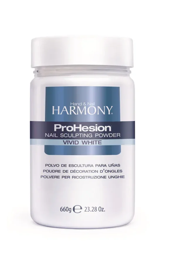 The Harmony ProHesion Nail Sculpting Powder – Vivid White delivers flawless, professional-quality acrylic enhancements with exceptional control and consistency. Formulated for superior adhesion and strength, this vivid white powder is ideal for creating striking smile lines, bold French tips, or custom designs.