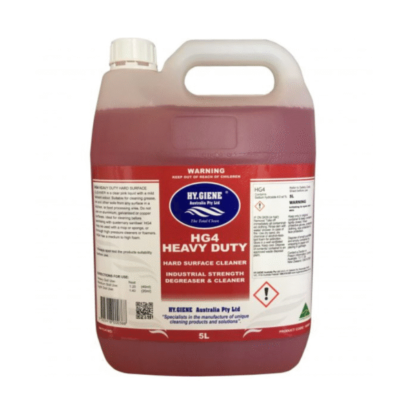 HG4 hard surface cleaner degreaser is a heavy duty hard surface cleaner and degreaser with a mild solvent odour.