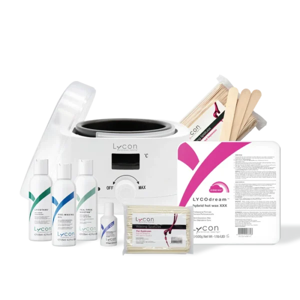 The LYCON Hot Professional Waxing Kit is carefully designed for all of your hot waxing needs, and conveniently packed in a pretty pink carry bag!
