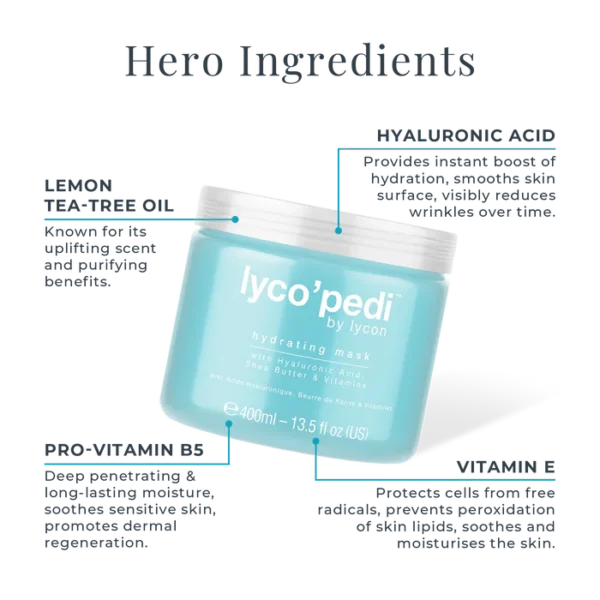 The combination of Marine Collagen and Hyaluronic Acid allows the lyco’pedi Hydrating Mask to rapidly hydrate, moisturise and revive tired feet.