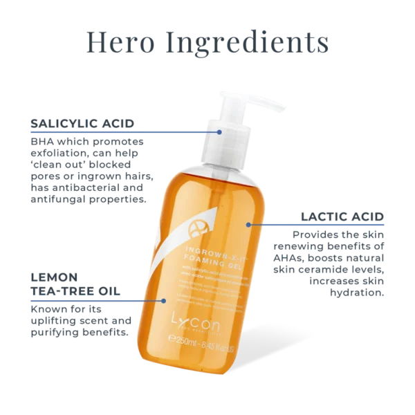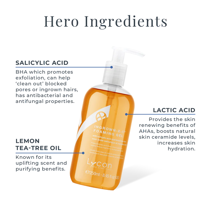 ingrown-X-it Foaming Gel with Salicylic Acid and Lemon Tea Tree is a beautiful skin cleanser for the face and body. It helps to effectively minimise the appearance of ingrown hairs, while calming breakouts and clearing impurities from the skin. It protects the skin’s pH balance, leaves the skin feeling clean, soft and smooth, and it smells amazing.