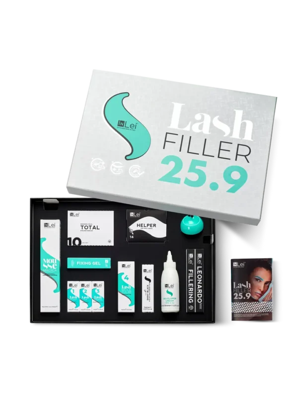 The kit contains the complete line of solutions and necessary accessories to perform the Lash Filler 25.9 treatment: