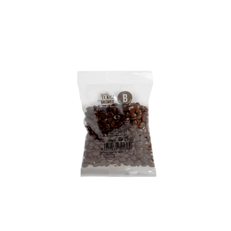 Italwax For Browed Topline Milk Chocolate Wax is designed to remove all hair types and can be applied in any direction of hair growth and removed without strips.