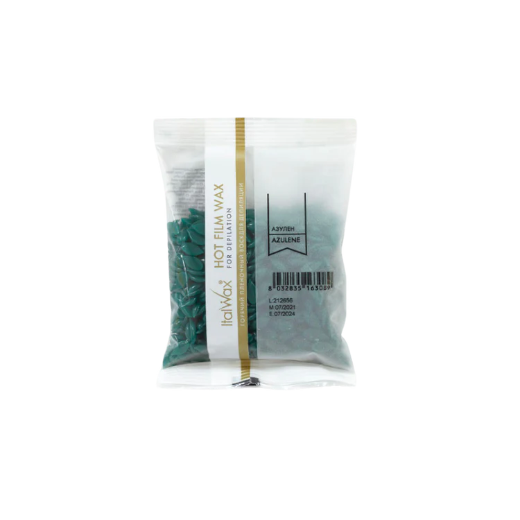 Italwax Hard Wax Azulene is a professional strip-free wax enriched with azulene, a chamomile-derived ingredient renowned for its soothing and anti-inflammatory properties. Specially formulated for sensitive and delicate skin, this wax melts at a low temperature, ensuring a gentle and comfortable application while reducing irritation and redness during treatments.
