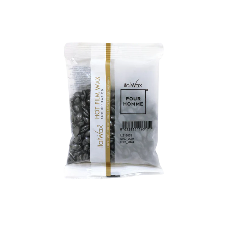 Italwax Pour Homme Film Wax Silver is a premium hard wax formulated specifically for male hair removal. Its advanced polymer formula delivers exceptional elasticity and adhesion, making it highly effective on thick, coarse, and stubborn hairs typical of male clients. Melting at a low temperature, the wax ensures a comfortable application, reducing discomfort while protecting the skin.