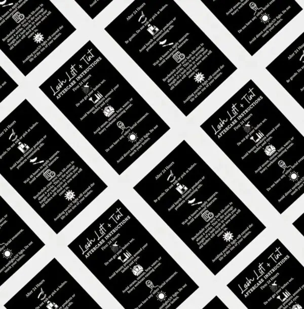 Set clients up for success with the Lash Extension After Care Cards – 50 pcs. Designed for professional salons, these easy-to-read cards outline the do’s and don’ts that protect retention, reduce premature shedding, and keep lashes looking fresh between appointments. The smooth, durable stock resists smudging from oils and makeup, while the clean layout photographs well for social posts and welcome packs.