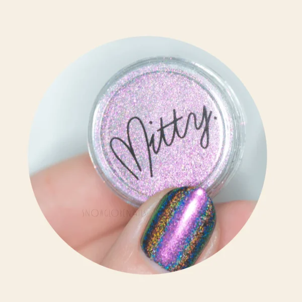 Mitty nail holographic powder is made with FDA, EU, & AU compliant ingredients. Cosmetic grade pigments.