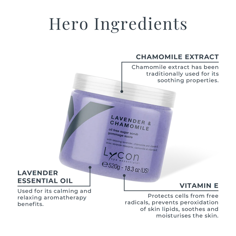 A luxurious spa-quality, oil-free sugar scrub for the entire body, with relaxing lavender and chamomile. Gently exfoliates and moisturises at the same time, without leaving oily residue, which can clog skin and create breakouts.