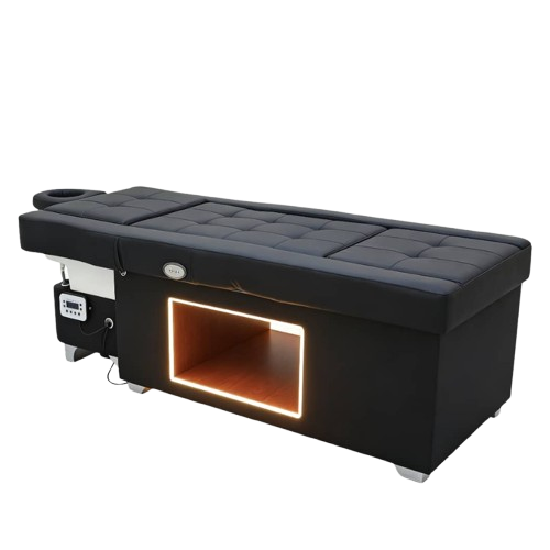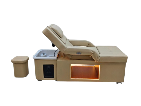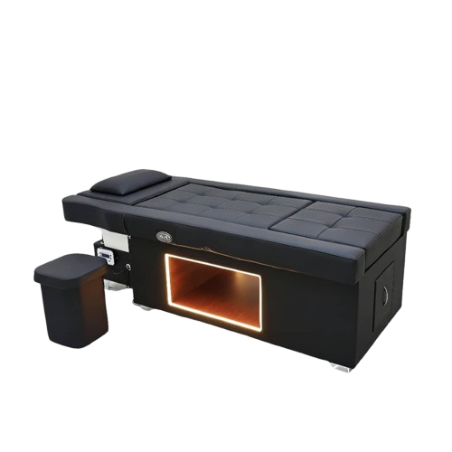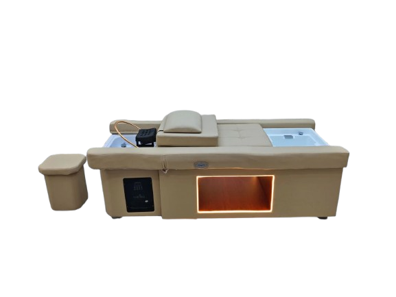 Fully electric functionality allows you to easily adjust the bed for a wide range of treatments. From head spa services to pedicures and beauty treatments, this unit adapts to your needs. The integrated water halo and washing system ensure consistent, high-quality results. It is a versatile investment designed to support long-term business growth.