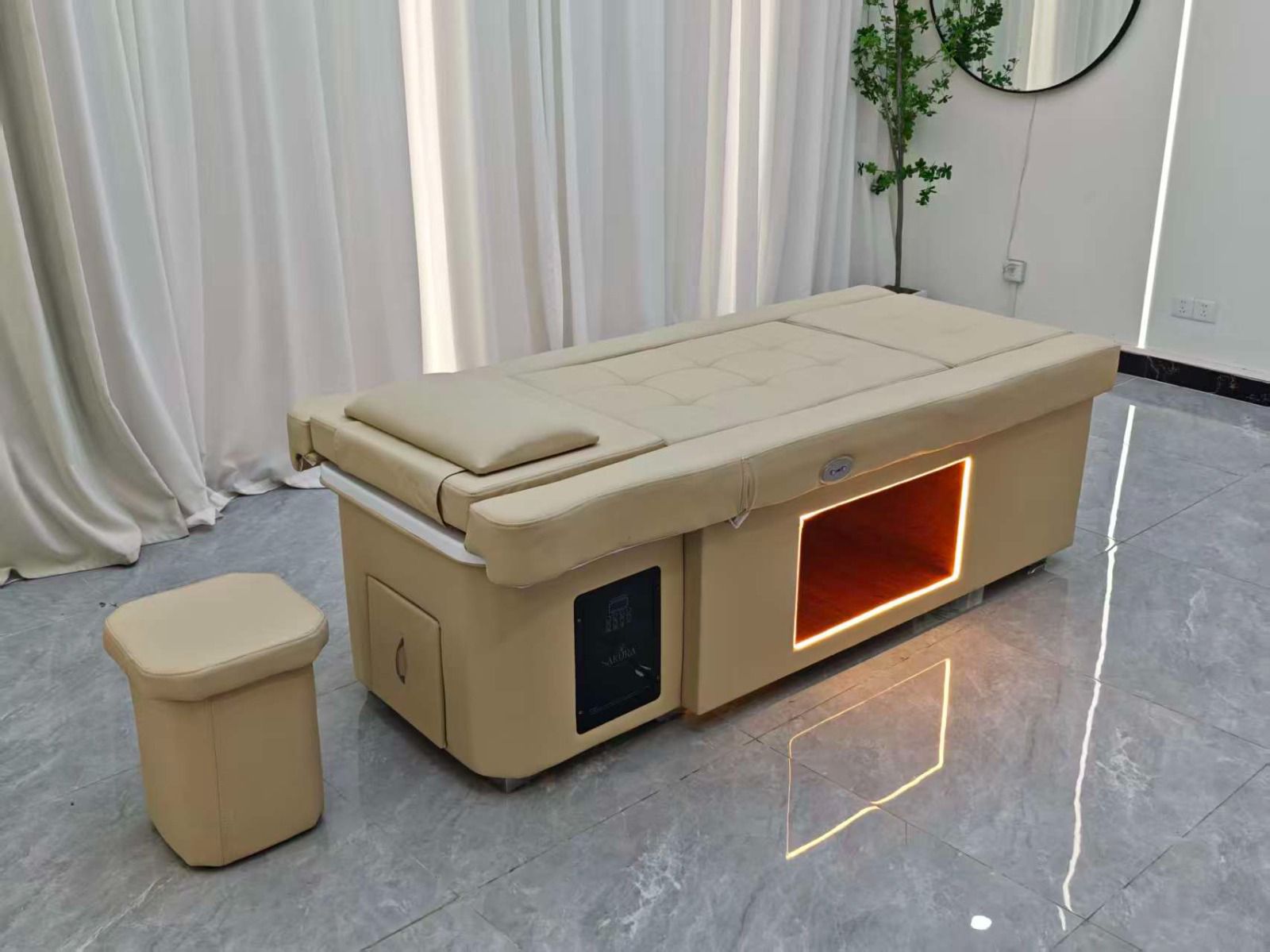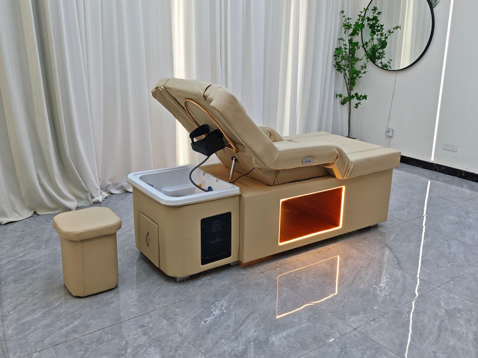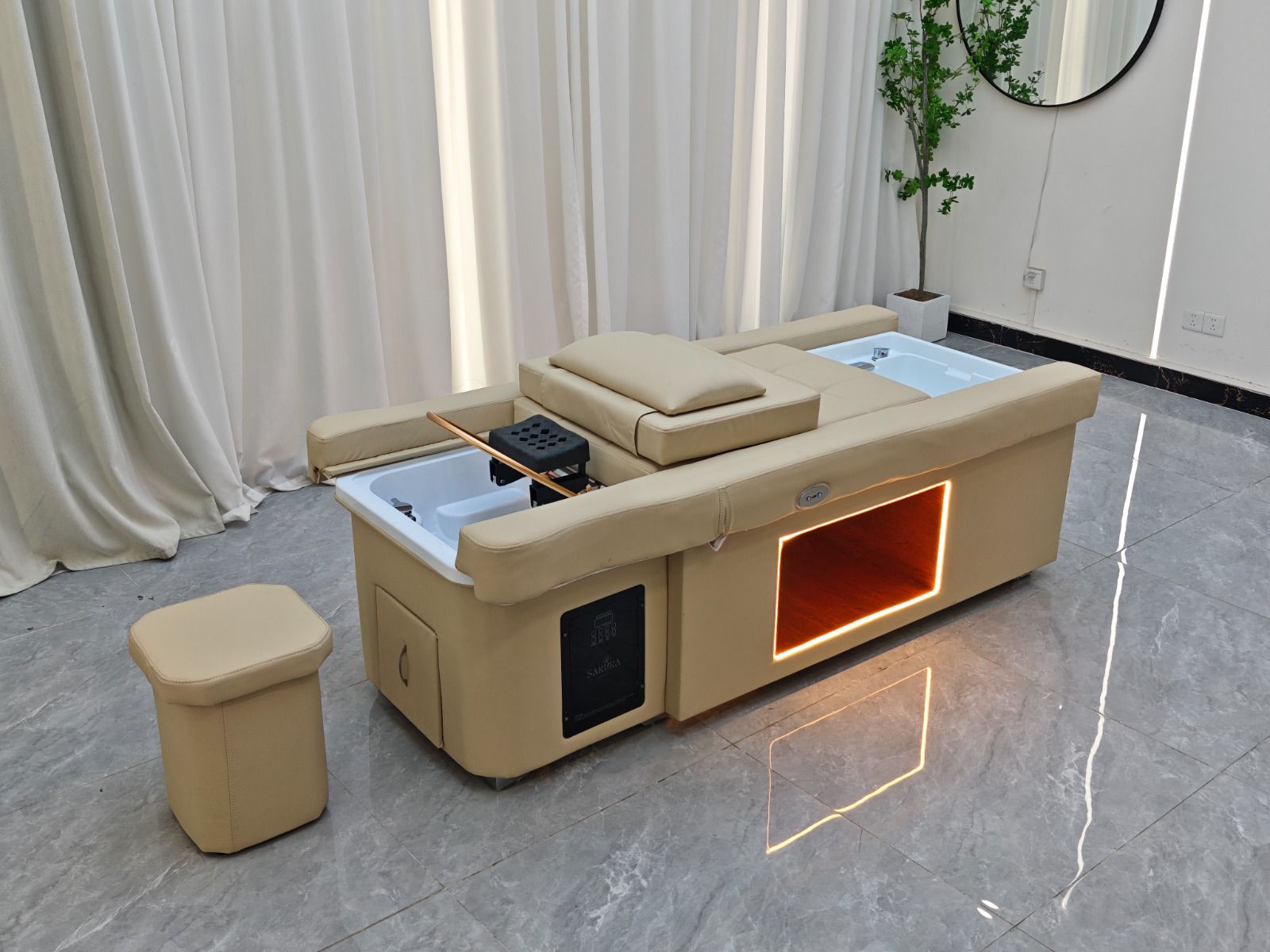 Multifunctional Efficiency: Combines scalp spa, hair washing, and pedicure services in one elegant unit.