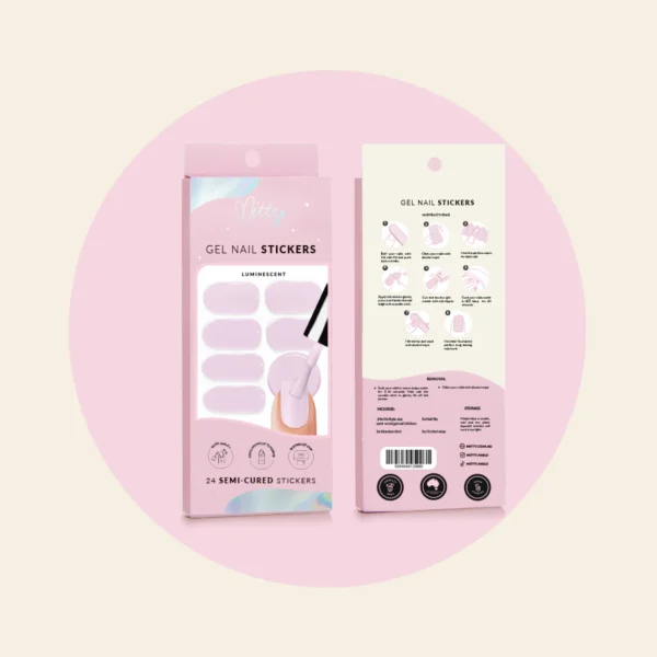 Mitty Semi-cured gel nail stickers are crafted with genuine liquid gel, pre-set at 60% completion. These flexible, self-adhesive strips conform seamlessly to nails of various shapes and sizes. Following application, a brief exposure of just 60 seconds under a LED lamp achieves full 100% curing, ensuring a salon-quality finish.