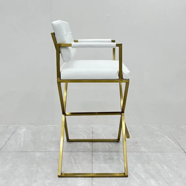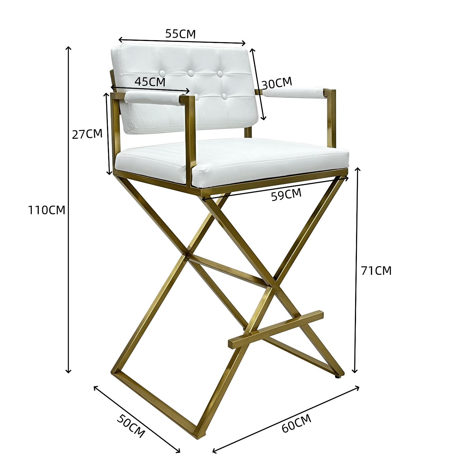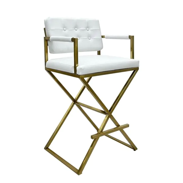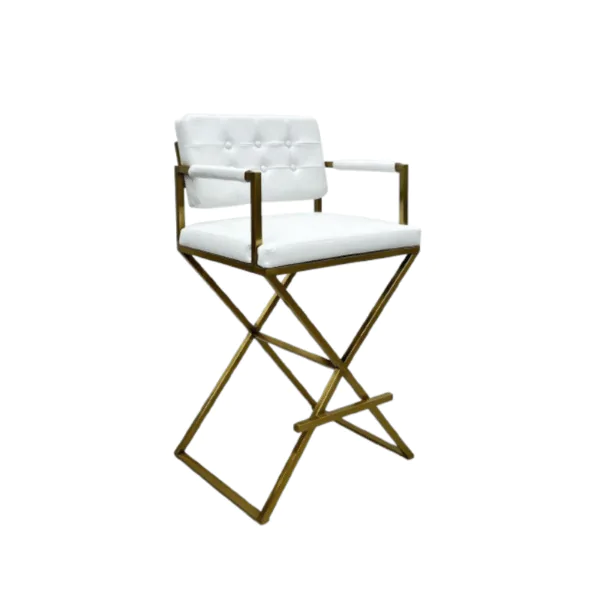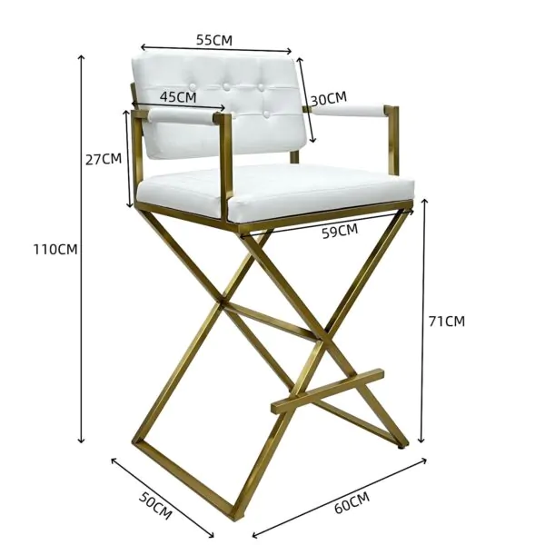 Bring glamour and sophistication to your beauty space with the Luxury Make Up Chair. Crafted with plush white button tufted upholstery, this chair delivers both comfort and elegance for clients during makeup application, styling, or grooming sessions. The gold finished frame with a modern cross leg base adds a high end aesthetic while ensuring strength and durability for daily professional use.