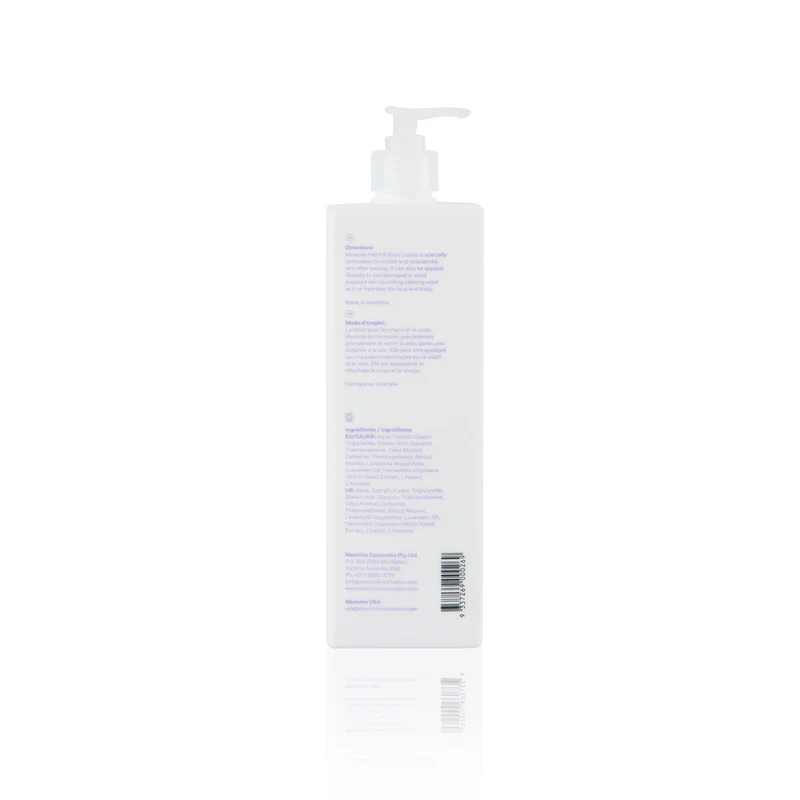 Mancine Professional Lavender & Witch Hazel Hand and Body Lotion with natural botanicals soothes and calms the skin after waxing. Excellent for moisturising after sun or wind and re-hydrating the hands and body. With a mild pH it helps promote a smooth, soft complexion and is also great for manicures.