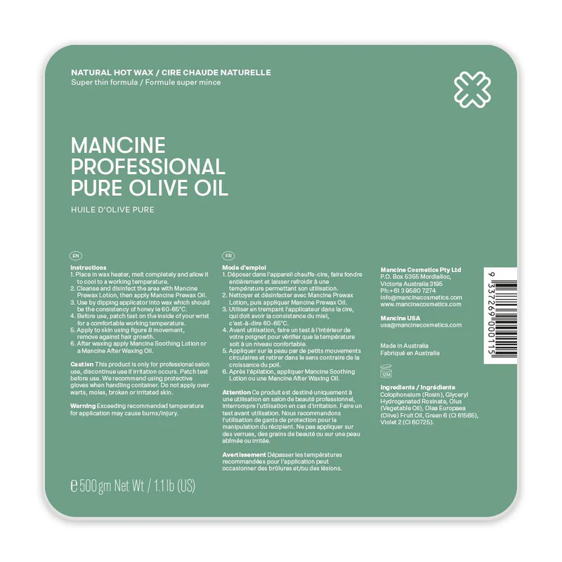 Mancine Professional Natural Hot Wax / Pure Olive Oil 500g