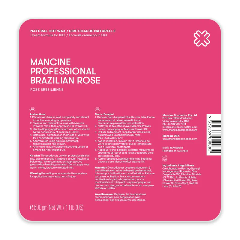 Mancine Professional Natural Hot Wax / XXX Brazilian Rose 500g