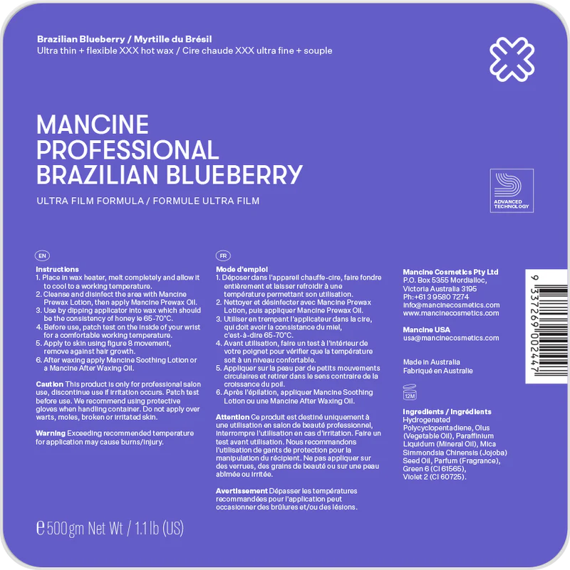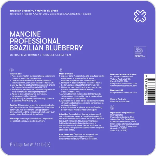 Mancine Professional Ultra Film Hot Wax / Brazilian Blueberry 500g
