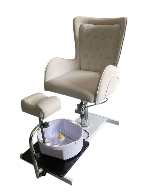 Crafted with plush cushioning and high-quality cream upholstery, the ergonomic design ensures your clients enjoy a relaxing and comfortable experience throughout their pedicure session.