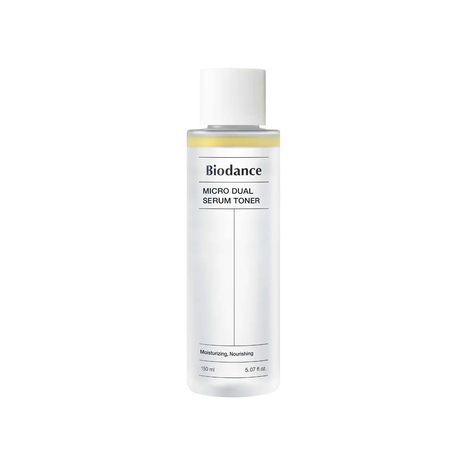Biodance Micro Dual Serum Toner 150ml is a perfectly balanced toner with an optimized blend of 3% grape seed oil and 97% serum water.