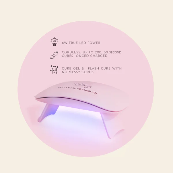 To use, you need to charge this cordless nail lamp with the supplied USB charger, just like your mobile does. Once charged get up to 200, 60 second cures on one charge. No buttons just press on the top to activate, so stylish, so easy to use.