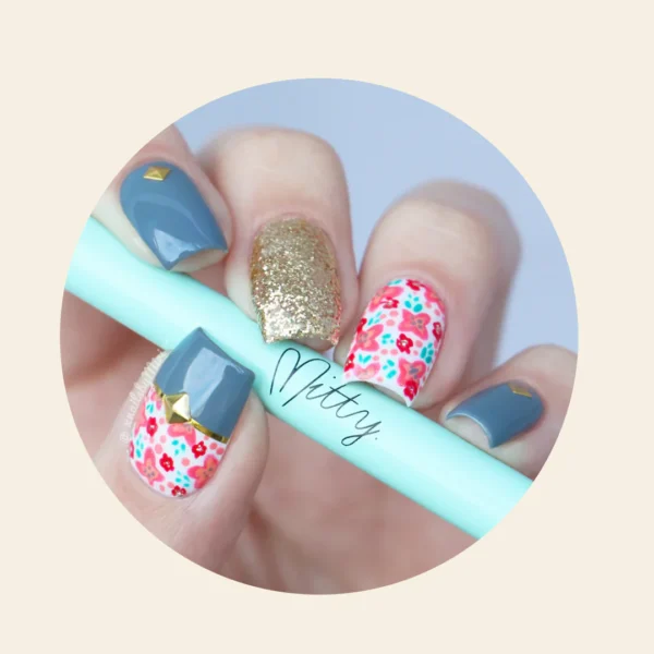 To use this nail brush, dip the tip in gel paint, like Mitty gel paints, making sure you don’t have too much on your brush. Gently place the brush on the nail and start drawing.