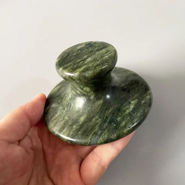 - Bring calm, balance and grounding into every treatment with this beautifully polished Mushroom Jade Stone Massage Tool. Crafted from natural green stone, its ergonomic mushroom shape fits effortlessly in the hand, allowing for controlled, fluid movements across the face and body.