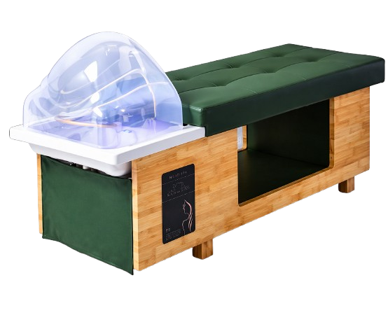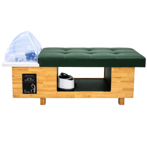 This head spa features a solid oak wood frame, delivering both durability and a high-end, organic finish that elevates any treatment space. Available in forest green and taupe, this unit blends seamlessly into both modern and nature-inspired interiors.