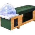 It features solid oak wood construction with a premium forest green and taupe finish.
