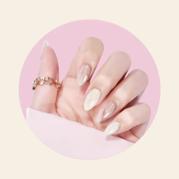 Mitty Semi-cured gel nail stickers are crafted with genuine liquid gel, pre-set at 60% completion. These flexible, self-adhesive strips conform seamlessly to nails of various shapes and sizes. Following application, a brief exposure of just 60 seconds under a LED lamp achieves full 100% curing, ensuring a salon-quality finish.