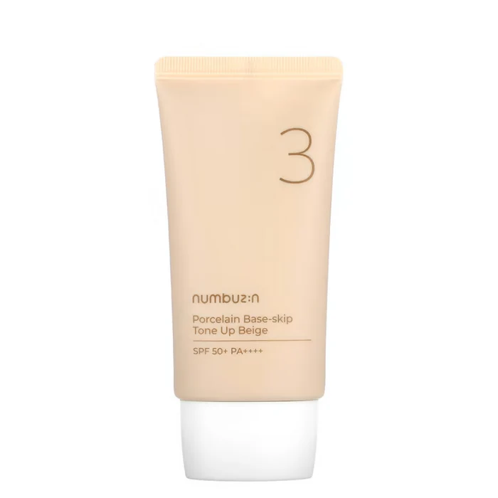NUMBUZIN No.3 Porcelain Base-skip Tone Up Beige is a versatile beauty essential that combines SPF 50+ PA++++ sunscreen, primer, and tone-up cream in one simple step, providing a light and natural coverage with a matte finish and concealing fine lines, redness, and pores. Designed with a natural beige hue, the NUMBUZIN No.3 ensures minimal smudging while shielding the skin against environmental stresses. Its plant-based formula is infused with 11 soothing ingredients, including Centella Asiatica, Rosemary, Artemisia, and Tea Tree, to calm and soothe sensitive skin.