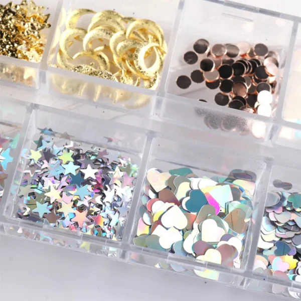 Versatile Use: The glitter flakes and sequins can be used to create a wide range of nail art designs, from subtle and elegant accents to bold and extravagant embellishments.