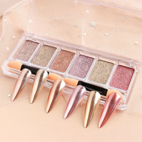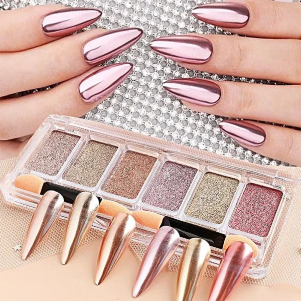 Mesmerising Chrome Effects: These pigments create mesmerizing chrome effects on your client’s nails, reflecting light and giving your manicure a captivating and high-shine finish.