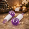 Place the purple facial ice rollers in the freezer before use. Once chilled, gently roll over clean skin using upward and outward motions. Focus on areas such as under the eyes, cheeks, jawline and forehead.
