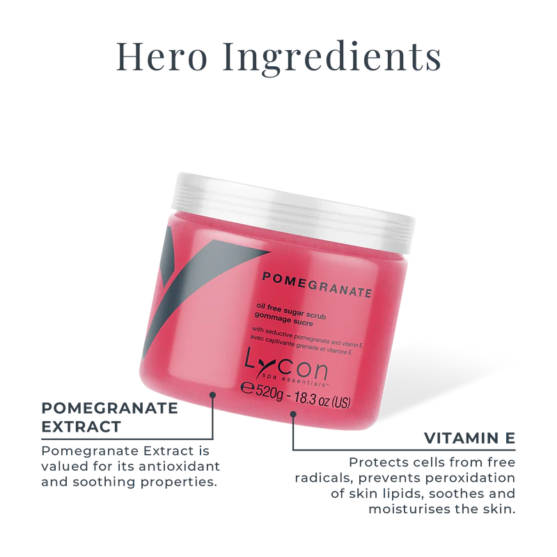 A luxurious spa-quality, oil-free sugar scrub for the entire body, scented with seductive pomegranate. Gently exfoliates and moisturises at the same time, without leaving oily residue, which can clog skin and create breakouts.