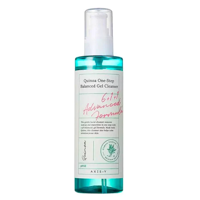 AXIS-YåÊQuinoa One-Step Balanced Gel Cleanser is a gentle, lightweight facial wash that removes makeup, impurities and excess sebum in one step. Formulated with quinoa, centella asiatica, green tea and other plant-based extracts, this pH-balanced cleanser works by restoring and maintaining optimal moisture balance after cleansing without making the skin feel dry or tight. The smooth, gel texture glides over the skin easily to remove impurities from the surface and unclogs pores to remove blackheads.