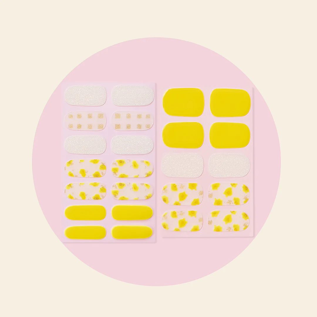 Mitty Semi-cured gel nail stickers are crafted with genuine liquid gel, pre-set at 60% completion. These flexible, self-adhesive strips conform seamlessly to nails of various shapes and sizes. Following application, a brief exposure of just 60 seconds under a LED lamp achieves full 100% curing, ensuring a s.Real gel polish, 60% pre-cured