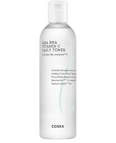 COSRX Refresh AHA BHA Vitamin C Daily Toner is a gentle exfoliating toner formulated with Golden-RX Complex. This formula is extracted from kiwi and white pitahaya fruit that acts as a natural brightening agent, perfect for eliminating dark spots and pigmentation. AHA and BHA contained in this toner will gently remove dead skin and impurities, to reveal a smooth and clear complexion. The watery, fast-absorbing texture makes this toner easy to apply.