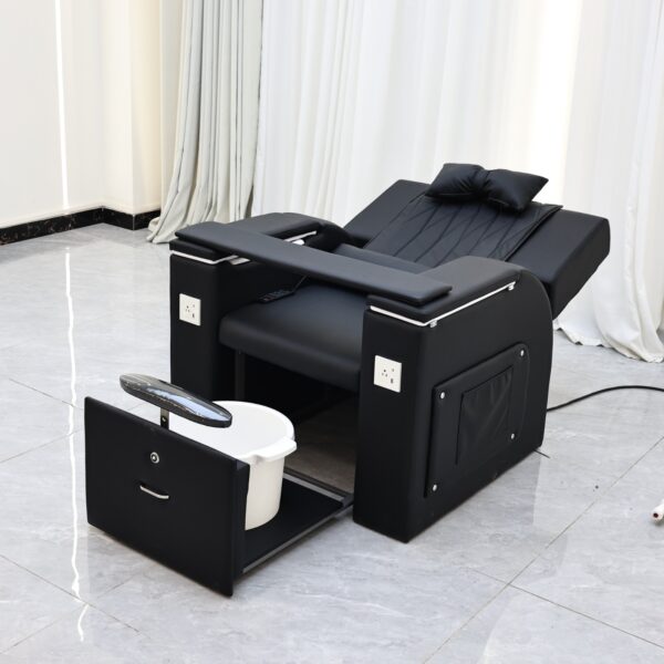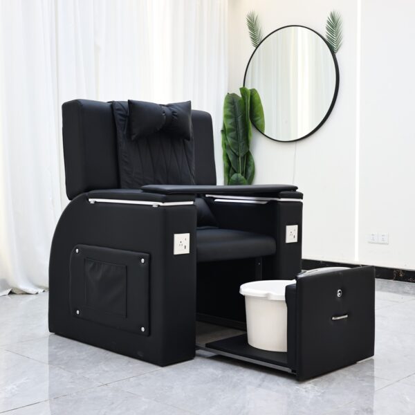 The RejuvaLux No Plumbing Pedispa is a modern and innovative pedicure station designed for maximum versatility and comfort. Built for salons that prefer mobility or have limited plumbing access, this unit features a pull-out basin system that eliminates the need for fixed installation while maintaining a high-end aesthetic and spa-level experience.