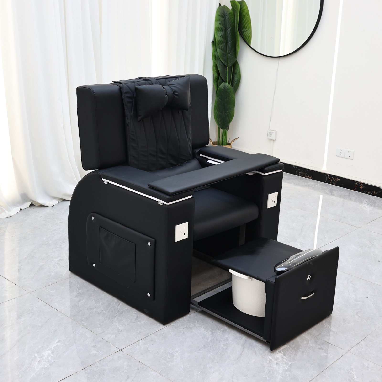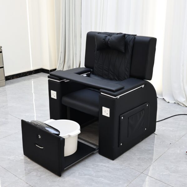 Crafted with premium-grade, water-resistant upholstery, the RejuvaLux Pedispa ensures lasting durability and easy maintenance. The plush cushioned seat and backrest provide superior comfort, while the detachable arm tray and side storage compartments enhance functionality. Its compact design makes it ideal for beauty salons, spa lounges, or home studios looking for a professional touch without complex plumbing requirements.
