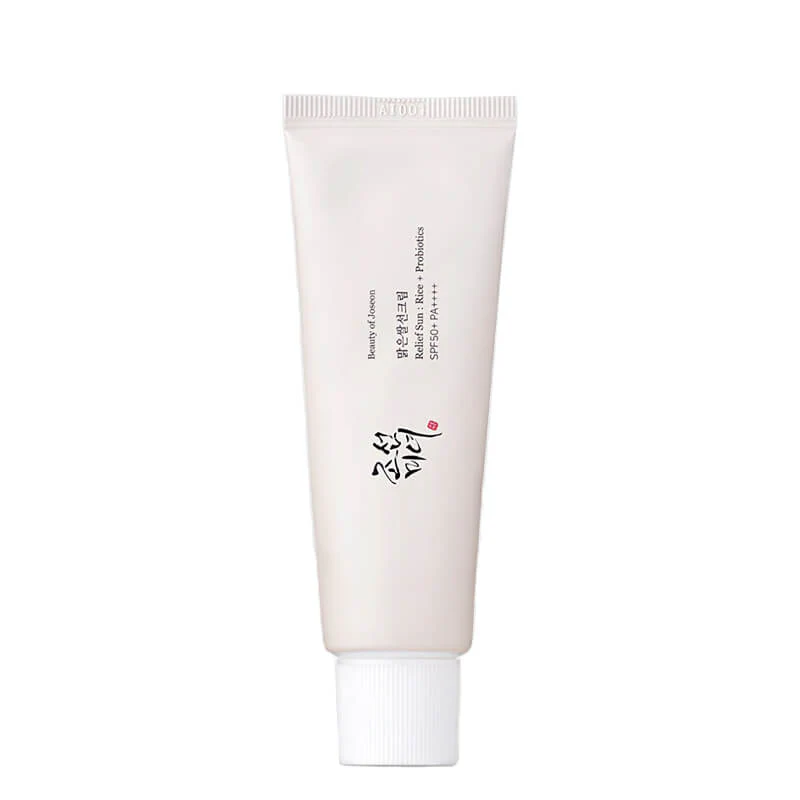 BEAUTY OF JOSEON Relief Sun: Rice + Probiotics is an SPF50+ PA++++ chemical sunscreen that provides calming and brightening benefits. The creamy-texture sunscreen spreads evenly onto the skin without leaving a thick feeling. The lightweight texture of this calming suncream provides the skin with moisture without leaving behind a white cast. This organic sunscreen is formulated with 30% Rice extract and grain probiotics complex that is rich in minerals and vitamins, providing deep nourishment to the skin and making it suitable for sensitive skin types.