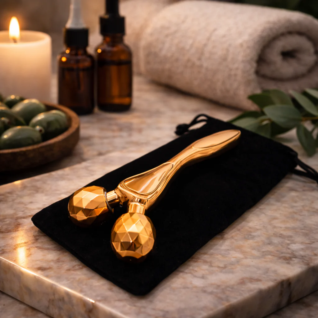 Designed for beauty professionals and self-care enthusiasts alike, this premium facial massager features dual rotating massage balls that gently roll across the contours of the face and neck to lift, tone, and promote natural radiance. With an ergonomic handle and no need for batteries or power, this is an accessible tool that elevates both salon services and home care regimens.