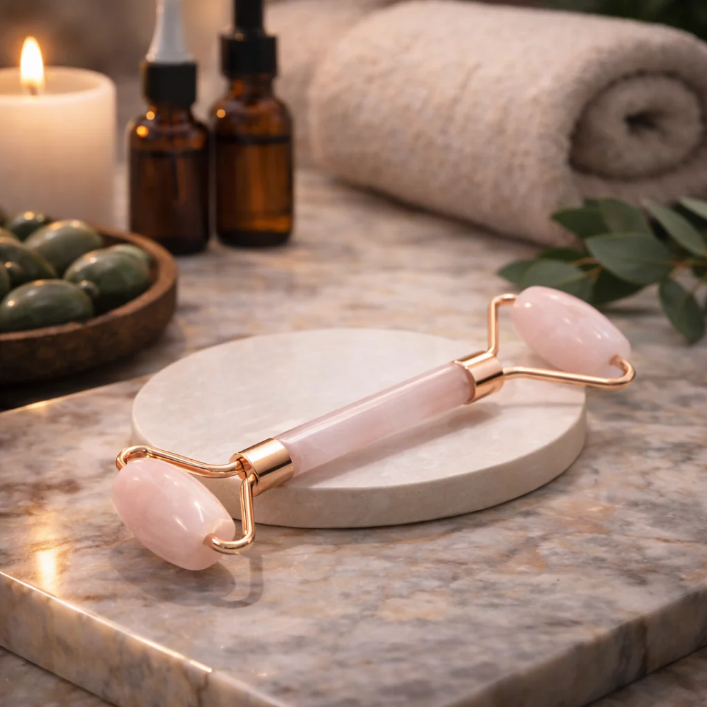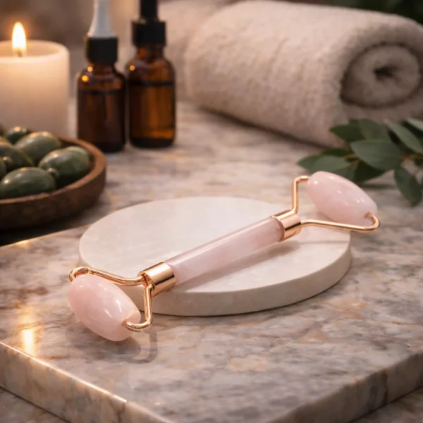 Rose Quartz Facial Roller – Crystal Face Massage Tool for Glowing Skin