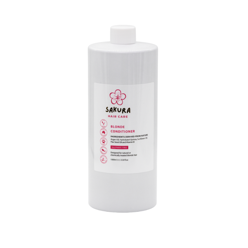 The Sakura Blonde Conditioner – 1L is an ideal solution for those looking for a nourishing, sulfate-free, vegan conditioner that hydrates, strengthens, and enhances the vibrancy of blonde hair. Perfect for regular use, it helps maintain your blonde hair’s natural beauty, vitality, and shine.