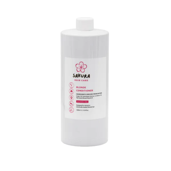 Indulge your hair with the Sakura Blonde Conditioner – 1L, a premium, sulfate-free, and paraben-free conditioner enriched with organic ingredients like Argan Oil, Hydrolyzed Quinoa, Sunflower Oil, Flax Seed Oil, and Vitamin B. Specifically formulated for blonde and lightened hair, this luxurious conditioner deeply nourishes, strengthens, and hydrates while maintaining the natural shine and softness of your blonde locks. Perfect for all hair types, it’s vegan, cruelty-free, and made with care using organic ingredients to provide the best for your hair.