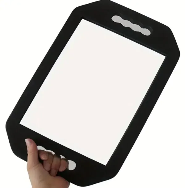The ergonomic double-handle design ensures a comfortable and secure grip, making it easy for stylists to maneuver during haircuts, colouring, or styling sessions. Lightweight yet sturdy, this salon mirror is both practical and professional — an essential finishing tool for every stylist.