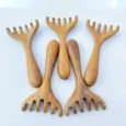 Bristles/Nodes: Rounded wooden pins on a flexible cushion or soft scalp bristles (model dependent)